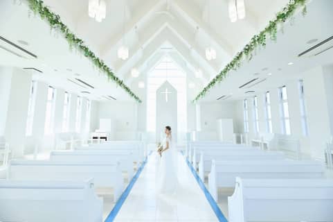 透明感あふれるホワイト空間に自然光が差し込み、花嫁をキラキラ輝かせます。