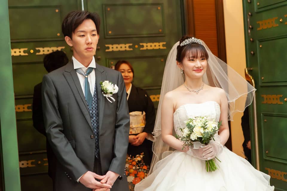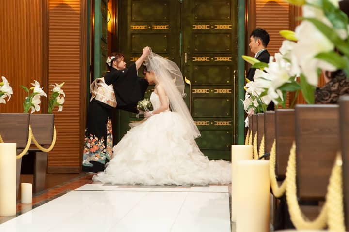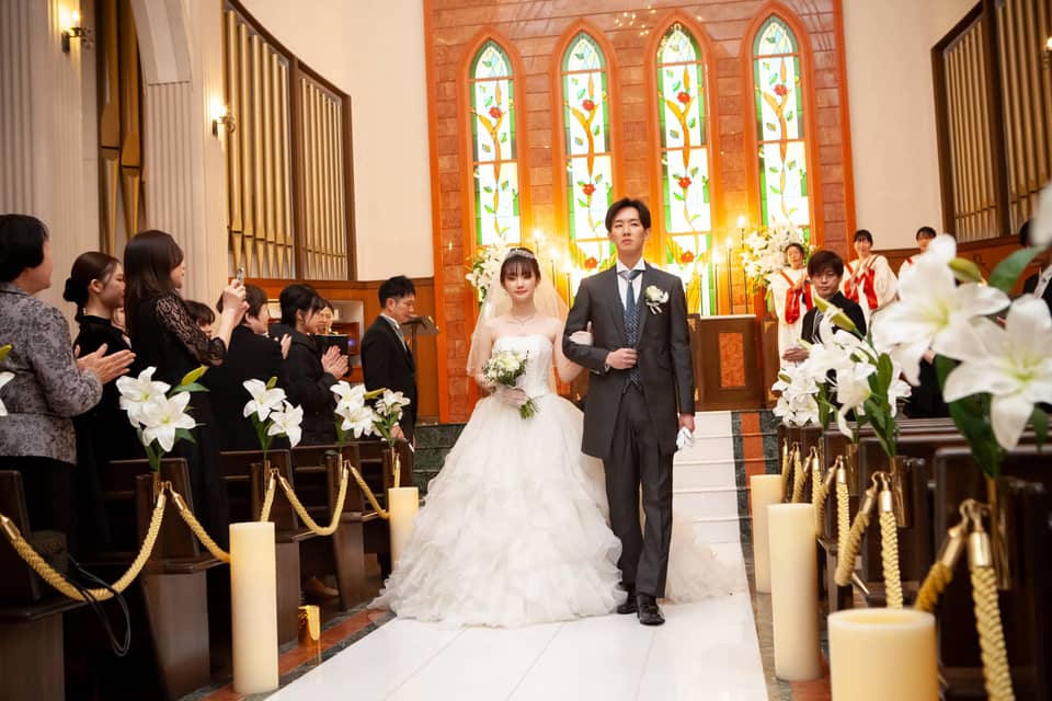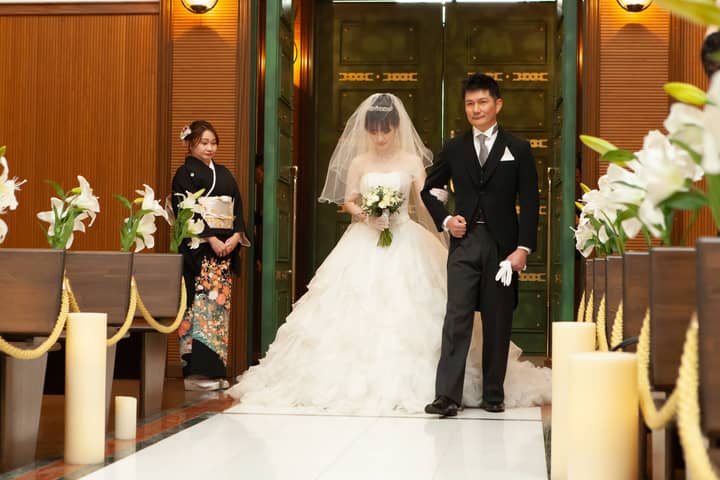 ゆっくりとバージンロードを歩まれました