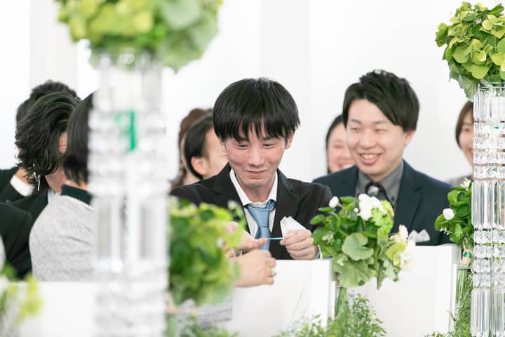 指輪交換前には、ゲスト全員の想いを繋ぐ「リングリレー」を実施。